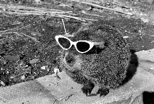 “The first sunny morning in a week greeted Ozarkers today, and wouldn’t you know it’d have to be Groundhog Day! Squinting in the dazzling sunshine despite his stylish sunglasses is Dickerson Zoo Park’s groundhog 'Mike,'and he had no trouble seeing his shadow. So, if the old legends are to be believed, we’re in for another six weeks of wintry weather. The weatherman, after expressing some surprise that Mike and his neighbor groundhogs hadn’t drowned in the more than four inches of rain that had fallen here since last Saturday, said he couldn’t predict too far in the future but did promise continued cool weather for at least the first part of the weekend. More clear skies and sunshine on Saturday should bring crisp temperatures in the high 40s or 50s. Ol’ Mike couldn’t care less, though, as he retreated to the warmth and peaceful darkness of his zoo shelter to continue his snooze, regardless of what them new-fangled weathermen with all their gadgets have to say…”