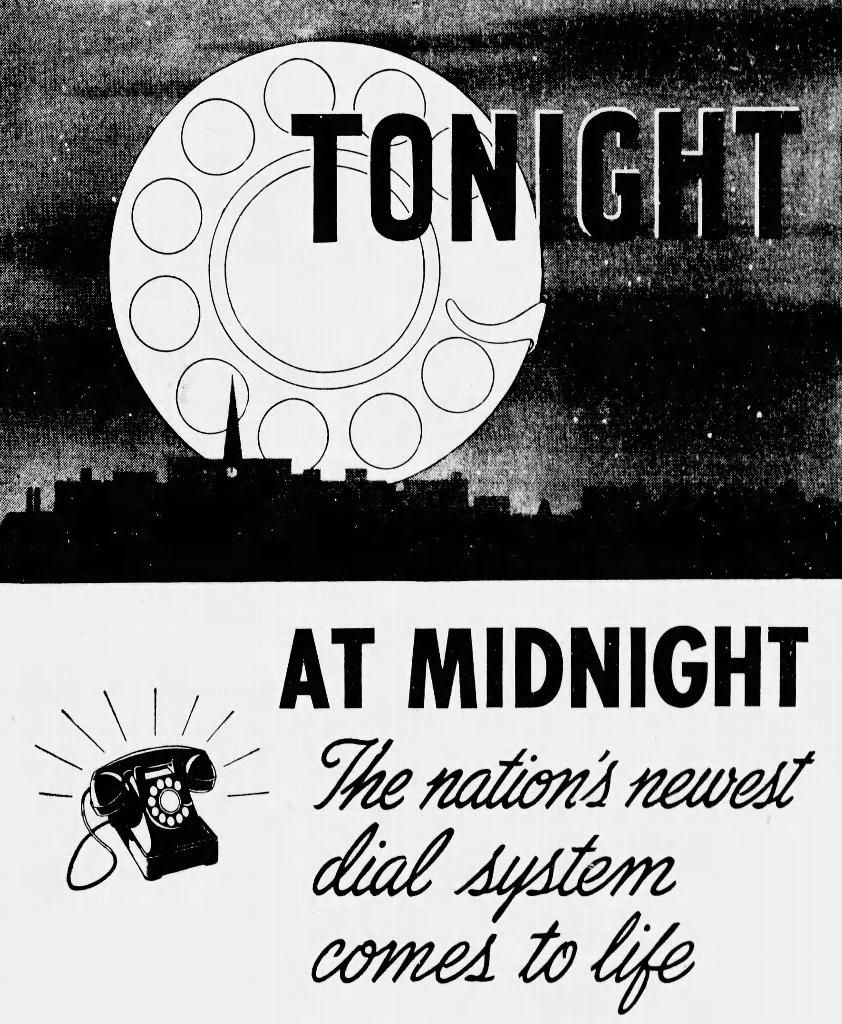 “At midnight, Springfield’s new dial telephone system is scheduled to go into operation.