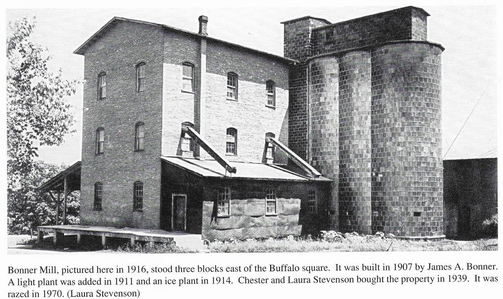 The photograph of the Bonner Mill is courtesy of the Buffalo Reflex and can be found in Reflexions: a pictorial history of Buffalo and Dallas County, Missouri compiled and published by the staff of the Buffalo Reflex. Another book of interest is Reflexions II: a pictorial history of Buffalo and Dallas County, Missouri.