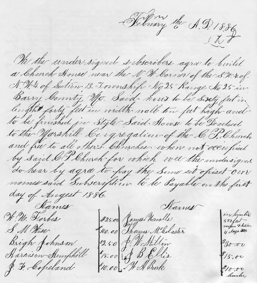 The following pages are reproductions of the original records of a group of people with a pioneer spirit and "a will to work" in unity for a common need for the good of all. Apparently this record was made with painstaking accuracy. The spelling may not have been perfect, but I would call the penmanship superb considering the fact that it was written with a quill pen.