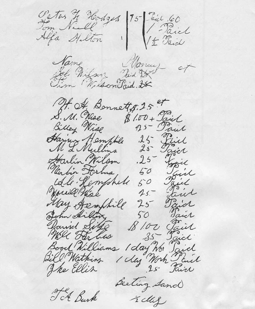One of the boys of the family would mount a horse and spread the word that the preacher had come, and "youns (you all) are expected at the meeting house tomorrow". Preparation would start. Those who could, went in the morning with ample food supplies and the meeting was on. Without a doubt, the church was the center of community life, influential in family and community affairs.